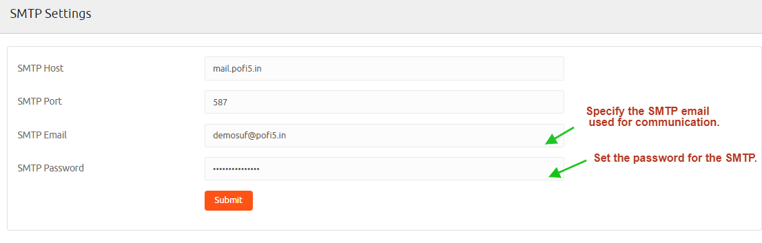 Type a new password for the SMTP in the corresponding textbox and click the submit button.