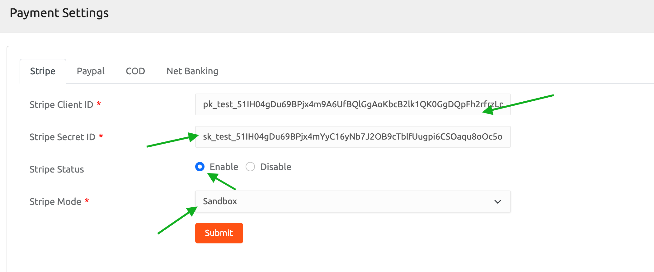 Stripe Mode - Select the stripe mode either, sandbox or live from, the list.
